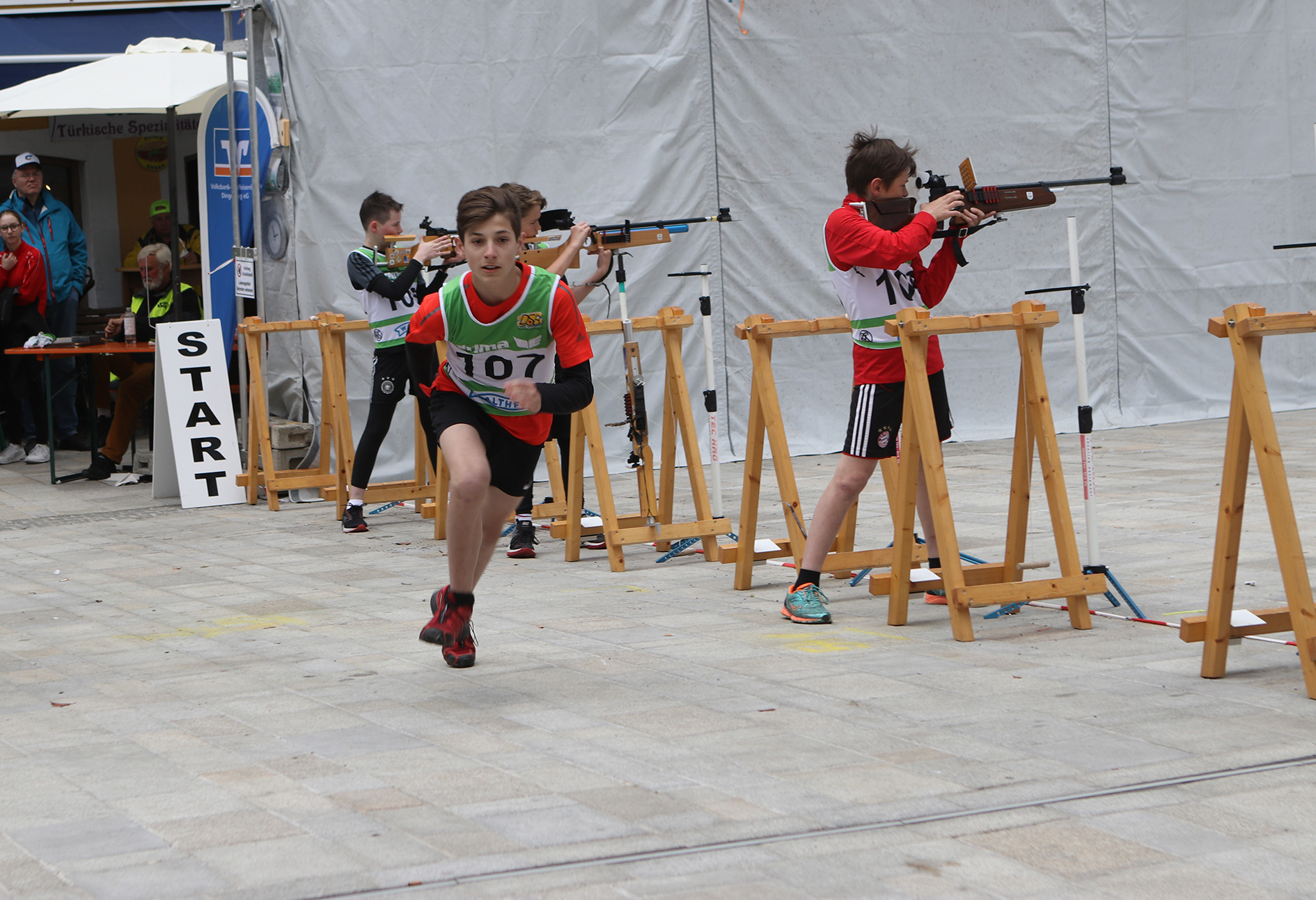 Die Internationale Bayerische Meisterschaft auf dem Marienplatz in Dingolfing setzte neue Maßstäbe. Eine Premiere – denn erstmals kam die attraktive Kombination aus Kurzstreckenlauf und Luftgewehrschießen zu den Zuschauern und nicht – wie sonst üblich – das Publikum in die Sportstätte. Das Organisationsteam um Dingolfings 1. Gauschützenmeister Rainer Mücke hatte auf dem Marienplatz eine professionelle Wettkampfarena mit überdachter Zuschauertribüne, einer komplett einsehbaren Laufstrecke und einem attraktiven Luftgewehrstand aufgebaut.