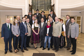 Der Informationsaustausch des Bayerischen Sportschützenbundes über schießsport- und gesellschaftsrelevante Themen mit den Landespolitikern ist ein regelmäßig gepflegter fester Baustein der Verbandsarbeit. Erstmals nutzte nun das Landesschützenmeisteramt die Gelegenheit, sich dem bereits traditionellen Parlamentarischen Abend des Bayerischen Landesjagdverbandes (BJV) anzuschließen und die Parlamentarier in Berlin über aktuelle schützenrelevante Themen im persönlichen Gespräch zu informieren. 1. Landesschützenmeister Wolfgang Kink und BJV-Präsident Prof. Dr. Jürgen Vocke bedankten sich bei den zahlreichen Teilnehmern der verschiedenen Parteien für die hohe Gesprächsbereitschaft, darunter Bundesminister Christian Schmidt (Ernährung und Landwirtschaft), Bayerns Innenminister Joachim Herrmann und Ministerialdirektor Anton Hofmann.
