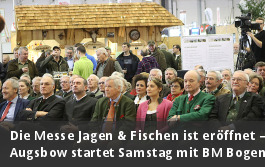 Die Messe Jagen & Fischen auf dem Messegelände in Augsburg ist eröffnet – die Messe Augsbow mit der Bayerischen Meisterschaft Bogen Halle öffnet am Samstag, 19. Januar 2019, ihre Pforten. Der stellvertretende Ministerpräsident, Bayerns Wirtschaftsminister Hubert Aiwanger, hob bei der Eröffnung hervor, dass die Sportschützen, Jäger und Fischer nachhaltig für den Erhalt der bayerischen Heimat eintreten. 1. Landesschützenmeister Wolfgang Kink hatte zuvor den Bayerischen Sportschützenbund mit seinen annähernd 500.000 Mitgliedern vorgestellt.
