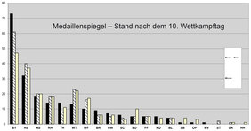 Am letzten großen Wettkampftag – Montag und Dienstag finden noch die GK-300-Meter-Wettbewerbe statt – gewannen Verena Schmid (RWS Franken) in der Disziplin Luftgewehr Jugend weiblich, Michael Kuhn (SV Edelweiß Reiterswiesen) mit der Standardpistole in der Altersklasse und die Luftgewehr-Jugendmannschaft der Rot-Weiß-Schützen Franken DM-Gold. (Zum Vergrößern der Grafik klicken Sie bitte auf das Bild!)