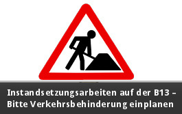 Instandsetzungsarbeiten auf der B13 – bitte Verkehrsbehinderungen einplanen!