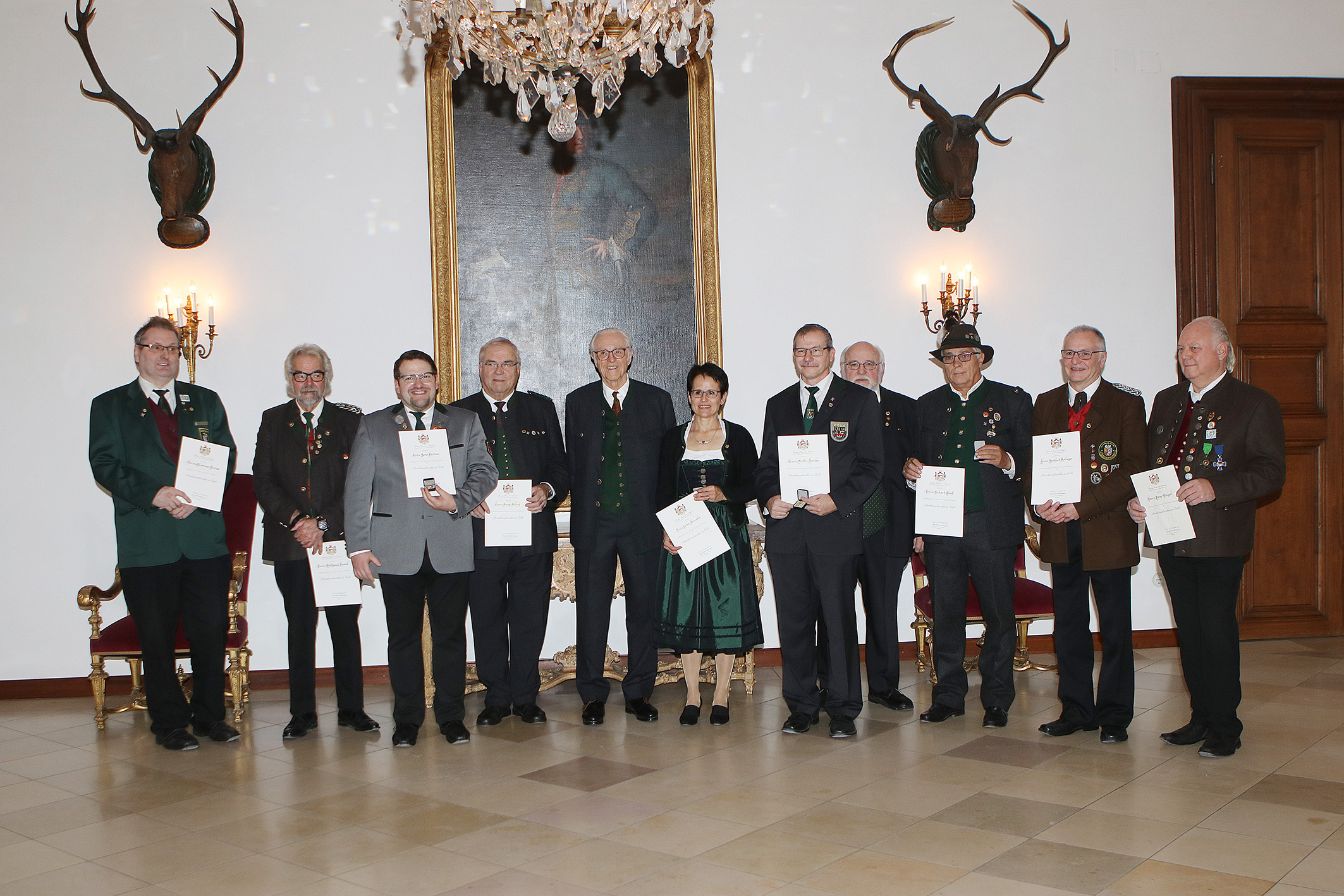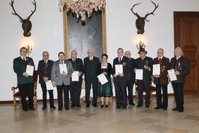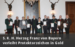 Der Protektor des Bayerischen Sportschützenbundes, S. K. H. Herzog Franz von Bayern, hatte zu einer Feierstunde auf Schloss Nymphenburg geladen, um das von ihm gestiftete Protektorzeichen in Gold an neun hochverdiente Schützenpersönlichkeiten zu verleihen. Dabei würdigte S. K. H. das ehrenamtliche Engagement der Geehrten, denn "viele Menschen sind hilfsbereit, aber nur wenige binden sich langfristig". Auch lobte er die integrative Wirkung des Schützenwesens, das Heimat gebe. Stellvertretender Landesschützenmeister Jürgen Sostmeier dankte S. K. H. Herzog Franz von Bayern für seine ideelle, tatkräftige Unterstützung des Bayerischen Sportschützenbundes und für die Stiftung des Protektorzeichens in Gold.