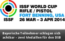 Erste Station der ISSF-Weltcupserie des Jahres 2014 war Fort Benning. Der Deutsche Schützenbund hatte mit zehn Schützinnen und Schützen nur ein kleines Team entsandt. Pistolen-Bundestrainer Jan-Eric Aeply hatte dabei vollständig – im Hinblick auf die Weltmeisterschaft in Granada – auf eine Nominierung von Pistolenschützinnen und -schützen verzichtet. Nur die OSP-Schützen waren in die USA gereist. Im kleinen DSB-Aufgebot standen drei BSSB-Schützinnen und Schützen: Sonja Pfeilschifter, Maren Prediger und Michael Janker.