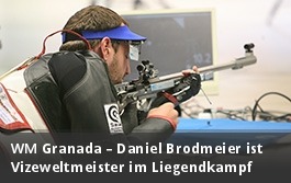 Herzlichen Glückwunsch Daniel Brodmeier! Der 27-jährige Niederlauterbacher holte mit einer grandiosen Leistung Silber beim Weltmeisterschafts-Liegendkampf in Granada. Als Sechstplatzierter nach dem Vorkampf hatte er sich für das Finale qualifiziert und startete ebenso wie seine Finalkollegen etwas verhalten. Aber dann lief er zur Höchstform auf und sicherte sich hinter dem Australier Warren Potent den Vizeweltmeistertitel. Damit verbunden ist auch ein Quotenplatz für die Olympischen Spiele in Rio. Damit stehen drei Medaillen für das deutsche Team im Medaillenspiegel dieser Weltmeisterschaften, die allesamt bayerische Schützen holten.